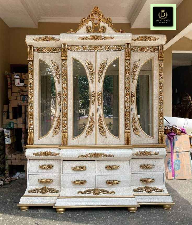 Proses produksi dilakukan secara hati-hati, teliti, dan rapi, mulai dari pemilihan bahan baku, pengerjaan rangka, hingga finishing akhir yang halus dan eksklusif. Lemari hias ini juga fleksibel dalam penempatan, dapat digunakan sebagai buffet ruang makan, lemari display, atau ditempatkan di dekat sofa ruang tamu untuk memperkuat kesan mewah ruangan.