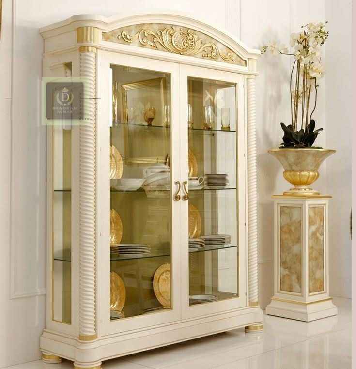 Lemari Hias Ruang Makan Ukiran Putih Duco Klasik Mewah