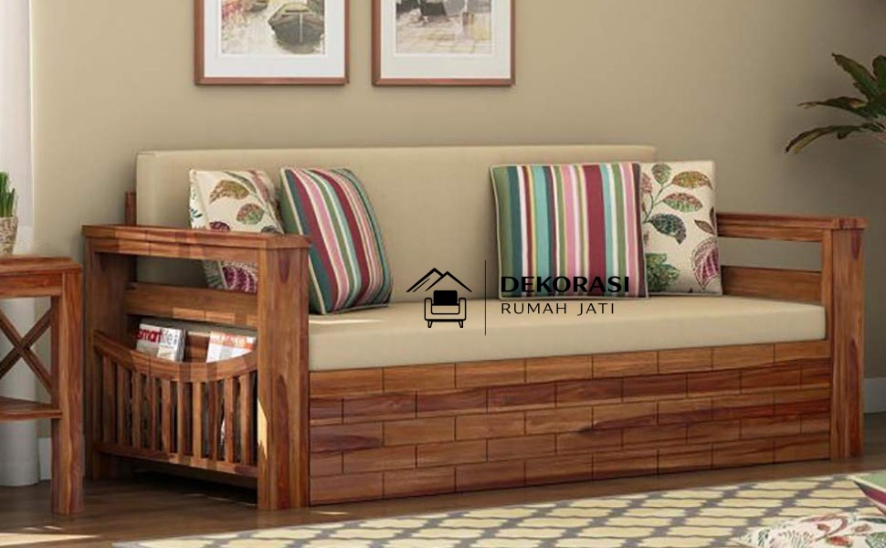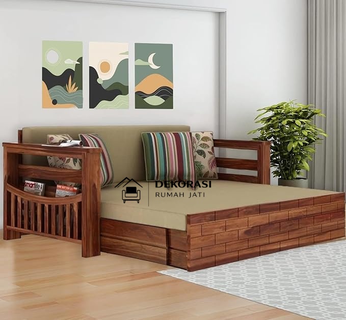 Sofa Bed Kayu Jati Solid Minimalis Modern Harri Multifungsi